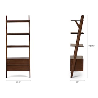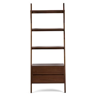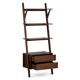 The Harles Shelving Unit leans on your wall. Well, actually, you lean on the Harles for all your storage needs. Use it to organize your books, magazines, or that growing record collection. Its three shelves and two sleek drawers make room for it all.