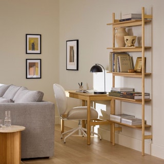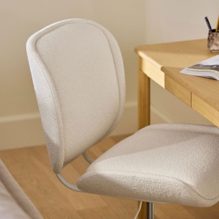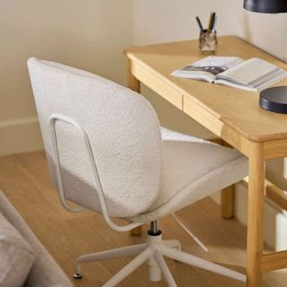 Scandi meets Mid-century in the cutest way. Rya's wide seat and soft bouclé fabric paired with Kacey's solid walnut frame and floating desktop design support you as you knock those KPIs out of the park. Kacey's modular design lets you mount the desk drawer on either side of the work station, and Rya's adjustable frame let's you lean back and get some perspective on that touchy email you're drafting.