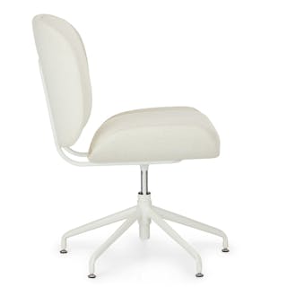 Scandi meets Mid-century in the cutest way. Rya's wide seat and soft bouclé fabric paired with Kacey's solid walnut frame and floating desktop design support you as you knock those KPIs out of the park. Kacey's modular design lets you mount the desk drawer on either side of the work station, and Rya's adjustable frame let's you lean back and get some perspective on that touchy email you're drafting.