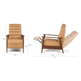 A master of disguise, the Ellow Recliner effortlessly transforms from a mid-century modern lounge chair to a deluxe recliner. Made with high density foam filling and solid walnut legs, the Ellow features a 3-point push back reclining mechanism that gives you more control over the way you lounge. All the way back for your afternoon nap, partially-reclined for a relaxed game show marathon, or fully upright when you’ve got company — the choice is yours.