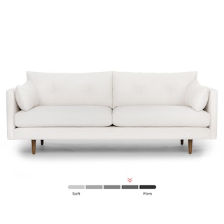 Take my breath away. The Anton sofa makes a dignified statement with its light-as-air hue, ultra-clean lines, and handsome tufting. High-density foam padding and feather-mix back cushions will have you writing the Anton’s name all over your notebook. And those walnut-stained legs? What dreams are made of.