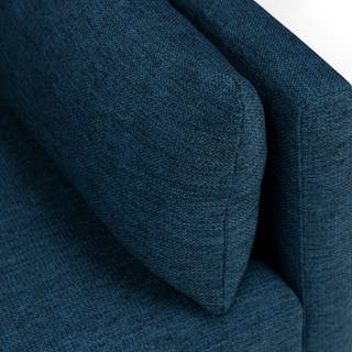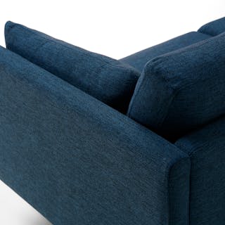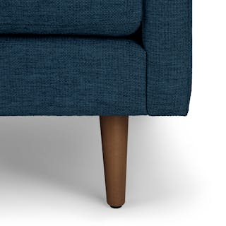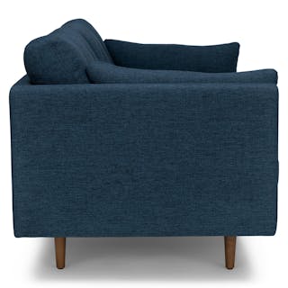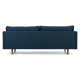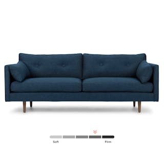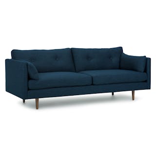 Poly-filled cushions are kept in check by the clean lines of this mid-century modern sofa. No-fuss upholstery and a neatly tufted button back make for an easy fit into even the most minimalist of living rooms.