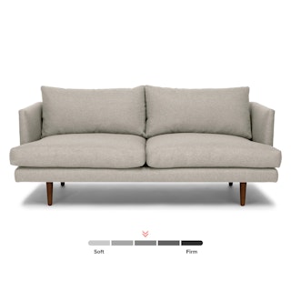 For those that love an angular mid-century look. Clean lines, slender arms and tapered legs give this loveseat a strong but airy presence. Deep seats with comfortable cushions make naps and lounging a no-brainer.