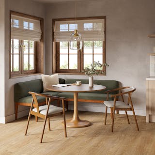 When we say "keep it light" this is what we mean: the Emmer and the Fonra, together in your dining space. Both built from solid wood, this table-and-chairs set works beautifully together because they establish a nice foundation for dinner without adding a lot of visual weight.