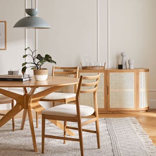 I am loving this piece. I am able to fit all my serving dishes and still have room. It fits perfectly into a smaller space where so many other pieces were too large.