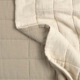 Wrap it up. Woven from 100% cotton, the Leni Quilt is a lightweight cotton with a natural puckered texture and an airy, open weave. This super soft fabric is made from two layers of cotton gauze basted together to create a pillowy touch. For the quilt, we’ve layered multiple sheets together to build a blanket that feels like a hug from a cloud.