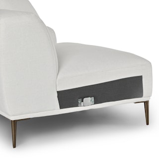 Upholstered in a soft, cotton- and linen-blend fabric.