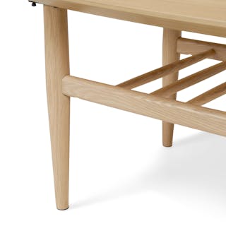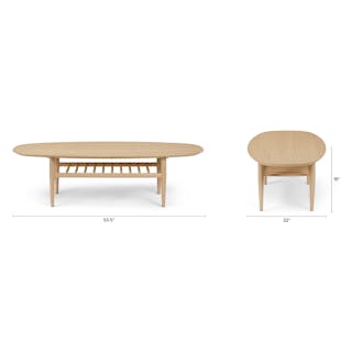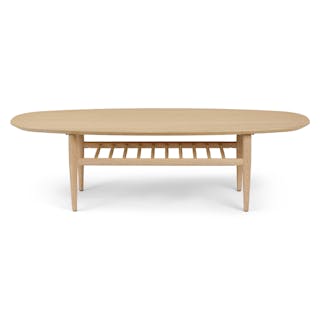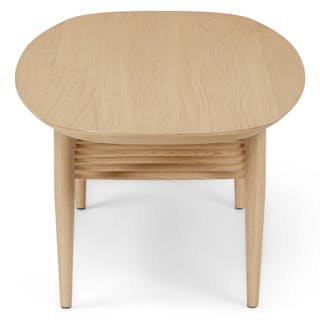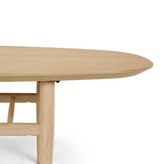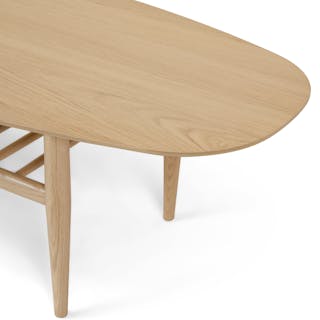 Surf’s up. The Lenia coffee table features an oval body reminiscent of the iconic mid-century surfboard shape. A solid oak base and spindle shelf gives you room to stash your latest design magazines, favorite architecture books, and that handmade ceramic bowl you picked up the last time you were in Hawaii. Cowabunga, dude.