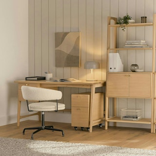 Love oak or walnut? How about mid-century design? Of course you do. This classic throuple is a mid-century dream. With its good looks and top-notch organizational skills, how could it not be? The Krossa file cabinet is the perfect buddy to the Krossa desk, more than capable of storing all your essential documents or carefully categorizing your midday snacks. This best-selling collection is designed to fit seamlessly together, showcasing fine craftsmanship and superior attention to detail with beautiful joinery and subtle curves. The Krossa isn't the kind to crave attention — but it will get some anyway.