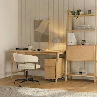 Love oak or walnut? How about mid-century design? Of course you do. This classic throuple is a mid-century dream. With its good looks and top-notch organizational skills, how could it not be? The Krossa file cabinet is the perfect buddy to the Krossa desk, more than capable of storing all your essential documents or carefully categorizing your midday snacks. This best-selling collection is designed to fit seamlessly together, showcasing fine craftsmanship and superior attention to detail with beautiful joinery and subtle curves. The Krossa isn't the kind to crave attention — but it will get some anyway.