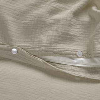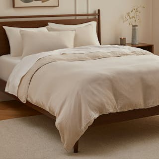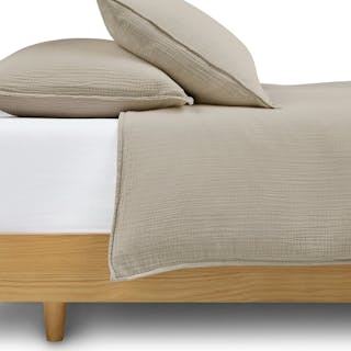 Named for its method, the Meso sheets and duvet undergo a process in which brushes are rubbed on the surface of 100% cotton to pull up the softest fibers of the yarn. Paired with the open weave and natural puckered texture of our Leni shams (also 100% cotton, not to brag), you'll count exactly two sheep before falling into a lovely, tempurature-regulated sleep.