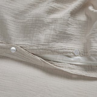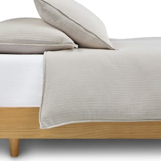 Named for its method, the Meso sheets and duvet undergo a process in which brushes are rubbed on the surface of 100% cotton to pull up the softest fibers of the yarn. Paired with the open weave and natural puckered texture of our Leni shams (also 100% cotton, not to brag), you'll count exactly two sheep before falling into a lovely, tempurature-regulated sleep.
