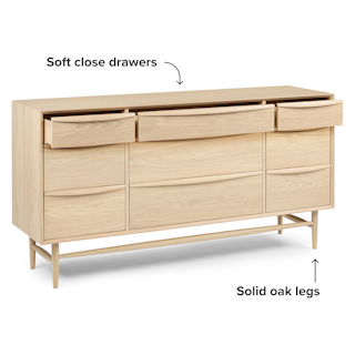 The Lenia isn’t just beautiful—it’s also highly functional. With nine drawers for your storage needs and solid wood curved handles and spindling, it’s got that airy Scandinavian vibe nailed.
