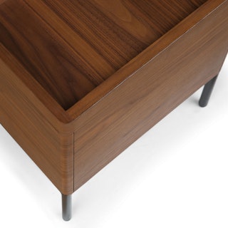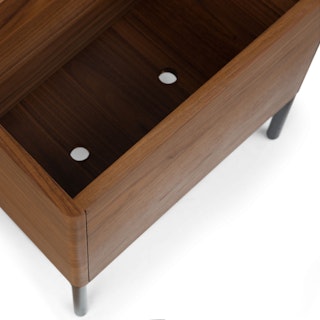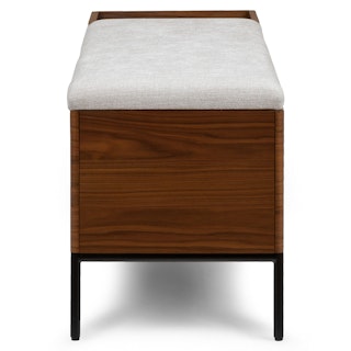 An instant entryway, the Thari Bench combines streamlined seating, ample shoe storage, and a practical side table in a sleek Scandinavian design. Made with veneered American Black Walnut, a durable fabric seat, and powder-coated iron legs, the Thari stands up to the task of the busiest spot in the house. Phone, keys, wallet and shoes? The Thari’s got space for everything.