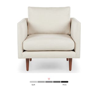 For those that love an angular mid-century look. Clean lines, slender arms and tapered legs give this chair a strong but airy presence. Deep seat with comfortable cushions make lounging a no-brainer.