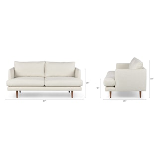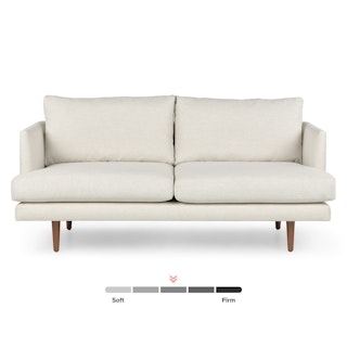 For those that love an angular mid-century look. Clean lines, slender arms and tapered legs give this loveseat a strong but airy presence. Deep seats with comfortable cushions make naps and lounging a no-brainer.