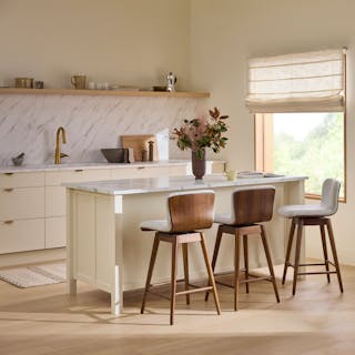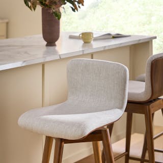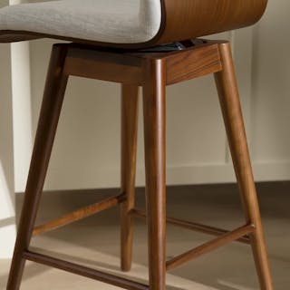 Turn your day around. A total mid-century modern dream seat, our Sede Swivel Counter Stool proves that good design always comes full circle. Tapered solid wood legs? Check. Bentwood seat? Absolutely. With a low, exposed veneer back, the Sede helps you lean into small talk or deep into conversation with confidence. Cheers to that.