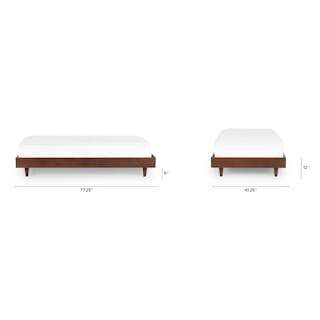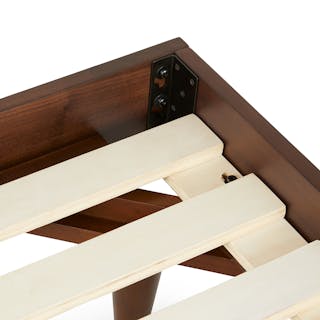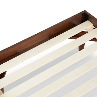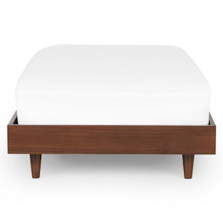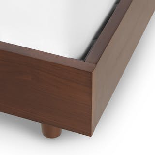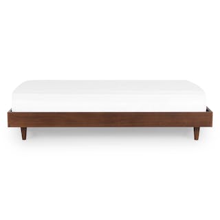 Caught you staring. The sleek, minimalist Basi bed frame meets its match in the Gatsby-era-inspired Almelo headboard: a perfect study in attractive opposites. The Almelo's foam-filled frame is upholstered in textural bouclé, and features twin shelves at just the right height for drinks, bedside reading, or a touch of ambient light. Paired with Basi’s high-quality veneer, sturdy plywood slats, and solid wood legs, the Basi x Almelo Bundle is built to support your dreams.