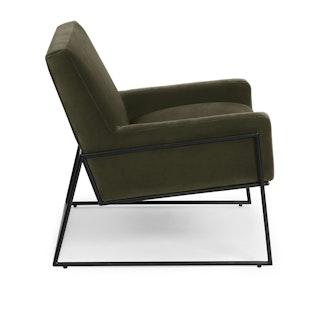 Get the green. The Regis in Juniper green brings earthy sophistication to your afternoon sit. Upholstered in plush cotton velvet, the Regis’ wide seat makes it great for leading an imposing meeting or for cuddling up with a book and a hot toddy. A powder coated aluminum frame assures you that the Regis has your back (and your butt) at all times.
