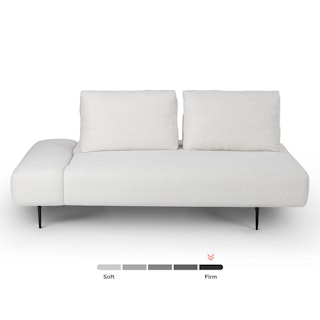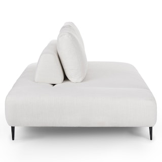 The Divan collection features moveable back pillows that can be configured any way you like. A welcoming sofa when company’s over then transforms into a comfy chaise for solo late-night lounging. The wood frame, powder-coated metal legs, and mixed feather padding come together to create a sleek, multi-purpose piece.