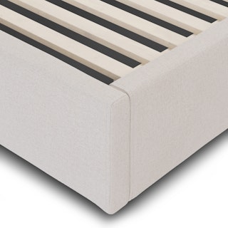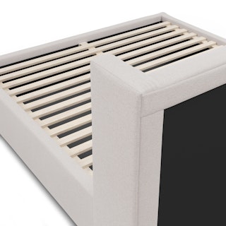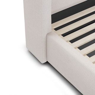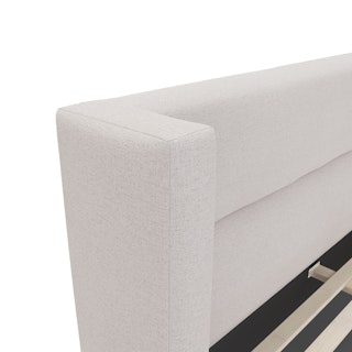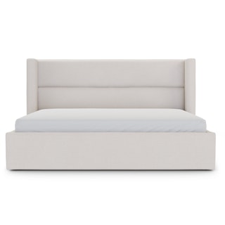 The CEO of dreamland. This generous wing-backed headboard has some pretty high expectations of your REM cycle. Upholstered with a linen-blend and padded with dense foam, the Calabri bed also features a generous upholstered base. Talk about an elevated aesthetic.