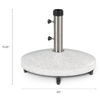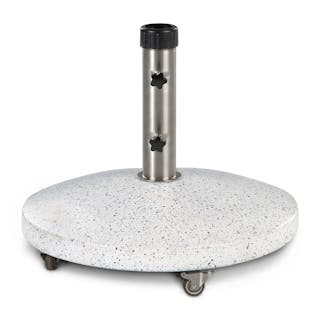 You are now an umbrella person. And not just any umbrella, a striped umbrella person. What is this, the French Riviera or your backyard? But wait... how's it going to stay put? Thankfully, we thought of that and bundled it up with the Solina base — easily move shade around your space and stay sun-safe all summer long. Molded from concrete, the wheeled Solina has handy wheeled casters and two adapters to help move and secure umbrellas of varying sizes.