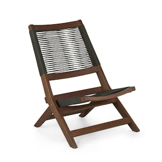 - Solid eucalyptus frame with a woven polypropylene rope seat and backrest