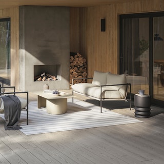 Stay a while. The Lubek chaise, built from a solid acacia wood base, is set close to the ground, encouraging you to really sink into (or even lie down on) those weather-resistant cushions. Paired with the Pindo side table, the solid piece of molded concrete pairs well with the warmth of the Lubek's solid acacia wood frame. Crisp cushions and super clean lines, we call this look "low key modernism."