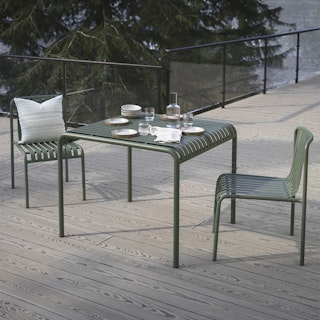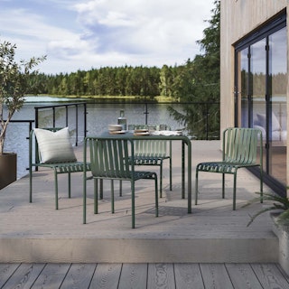 Stripes are always in. The Sarek's clean, modern shape and fun banded details make for a fun, functional backyard addition. With mix-and-match chairs, the Sarek Dining set is Instagram ready and primed to receive your spritzes, chip bowls, and various dips.