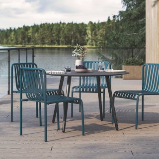 Stripes are always in. The Sarek's clean, modern shape and fun banded details make for a fun, functional backyard addition. With mix-and-match chairs, the Sarek Dining set is Instagram ready and primed to receive your spritzes, chip bowls, and various dips.
