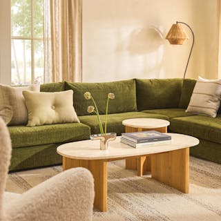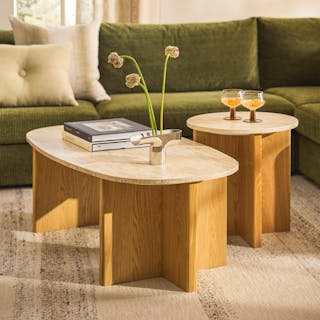 Thumbnail of Sporo 47.25" Travertine Coffee Table - Natural Oak provided by Linda - 1 of 0.