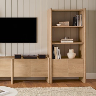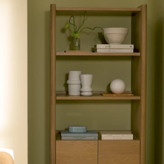 The Torme is characterized by simple lines and thoughtful details, like the softly rounded shelves and bevelled cupboard doors. Subtle but impactful, the Torme is a functional, beautiful addition to any space (but especially moody Norwegian studies).