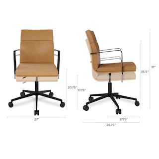 Classic elements, modern needs... that's the Mid-Century Office Bundle. The Gerven's buttery soft leather and sculpted metal armrests paired with Kacey's sturdy solid walnut frame and floating desktop design support your best work. The modular design lets you mount the Kacey desks drawer on either side of the work station. Go on, knock those KPIs out of the park.