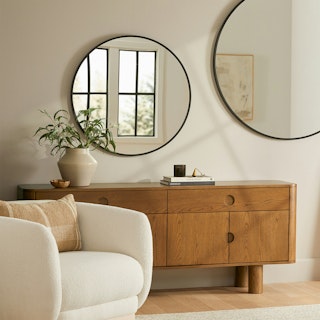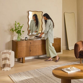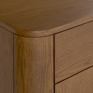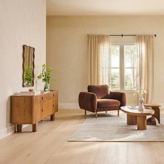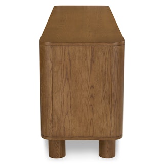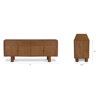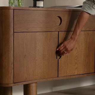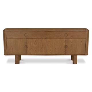 A simple form that's more than the sum of its parts, the Adel sideboard is boldly sculptural, but not overbearing. With solid wood edges and discreet recessed pulls. The Adel's legs are hollow, making it easy to move.