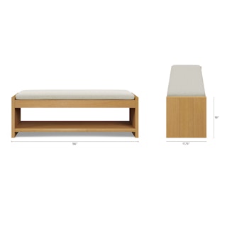 Cassie 56" Bench - Natural Oak and Ivory Chenille