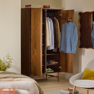 This armoire is very handsome and very well constructed. I own quite a bit of mid-century wood furniture and the build quality of this armoire matches that of ... More
