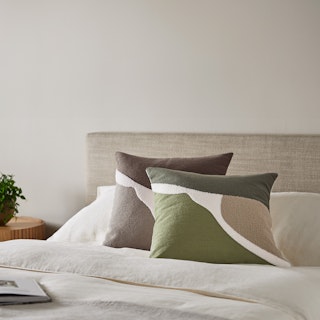 Good things come in threes. Three different shades, we mean. The Kesey pillow’s abstract design feels playful but relaxed. Woven from 100% cotton with acrylic embroidery, the Kesey collection will withstand a busy sofa (or your partner using the nice throw pillows as their personal nap support).