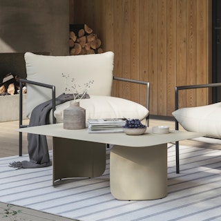 The Aby Loveseat and lounge chair are constructed from faux wicker and powder-coated aluminum. The look of wicker without the maintenance? Lightweight aluminum that’s easy to move around? Yes, please! Paired with the stylish and sturdy powder-coated metal Skane, this bundle promises to be a reliable companion, like Lassie, but for lounging and holding glasses of iced tea.
