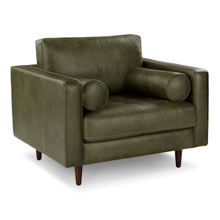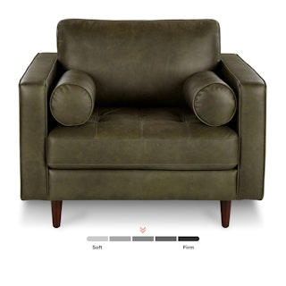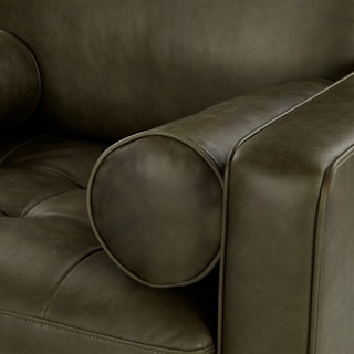 Not only will it support and comfort you, this piece will grow old with you — it gets even better looking with age. The Sven Chair’s corner-blocked wooden frame will hold you up on good days and bad, and this piece vows to mix well with all of your design choices. With clean lines, a tufted seat and luxuriously stuffed back cushions, this piece is worth settling into. Our most popular sofa, reimagined as a large, cozy lounge chair. This modern take on a mid-century classic features clean lines, a tufted seat, and a luxuriously stuffed back cushion. Two matching round bolsters complete the look. Natural color variations, wrinkles and creases are part of the unique characteristics of this leather and it will develop a vintage slouchy look with regular use.