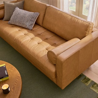 Sven. Charme. Tan. The Sven has been our most popular sofa since it launched 10 years ago. With a deep, tufted bench seat and relaxed vintage-esque leather, we think you’ll be charmed too.