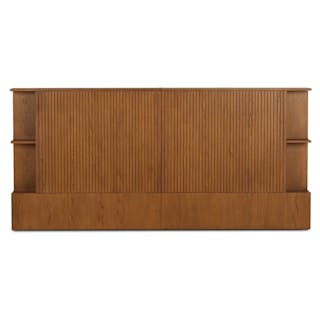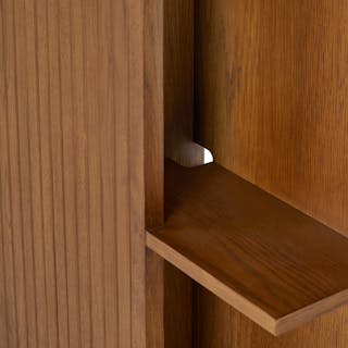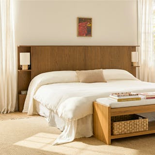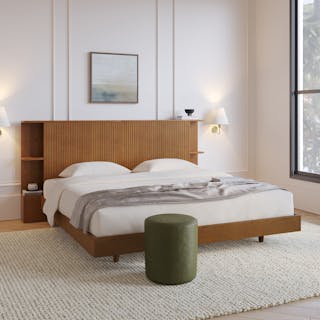 Make space with the Kouva bedroom bundle. With its unique solid oak tambour design and modern open shelving, the Kouva is ready to house your book collection, your empty water glasses, your alarm clock, and a midnight snack. And the Basi? It's just happy to hold your mattress.