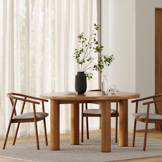 A simple form that's more than the sum of its parts, the Cozy Comforts Bundle is boldly sculptural, but not overbearing. With a strong, solid foundation of solid wood, this bundle is set apart by Munks round tuffet of velvet and foam filling. With a slightly curved backrest and rounded table edges, this bundle makes for one restful spot to relax at.