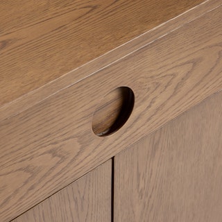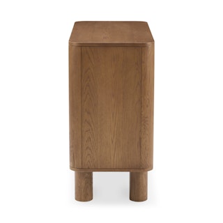 A simple form that's more than the sum of its parts, the Adel cabinet is boldly sculptural, but but perfectly sized for a small space. With solid wood edges and discreet recessed pulls, the Adel is a statement maker that doesn't overstep.