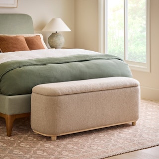 Holds your feet and your stuff. The Maribo Ottoman, with its soft-close lid and ample storage space, is a stylish double-threat.