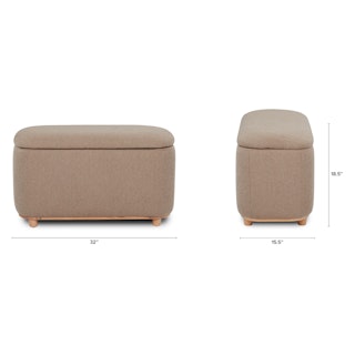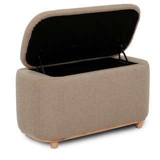 Holds your feet and your stuff. The Maribo Ottoman, with its soft-close lid and ample storage space, is a stylish double-threat.