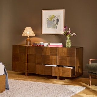 Love the look of this lamp! It adds texture and warmth to our living room.