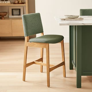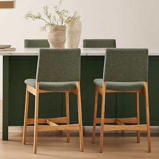 Take a seat on the Nosh for some grade-A 'noshing,' as in 'sitting comfy'—that's right, we're co-opting the verb. Designed with tapered legs, soft textured upholstery, and solid wood construction, this counter stool is an MCM-inspired design at its best.