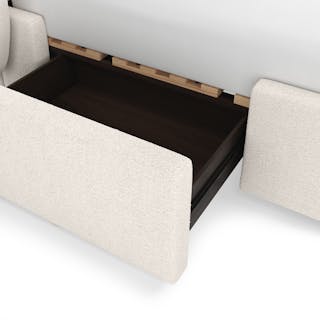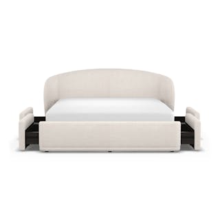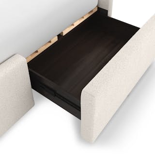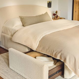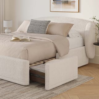 You know those big teddy bears you cuddled with as a kid? The Kayra is like that, except less weird to curl into as an adult. Something about its super plush bouclé fabric, sculpted headboard, spacious 4-drawer storage, and curvy proportions make this bed the stuff that childhood dreams are made of.