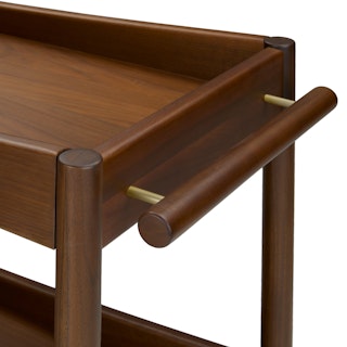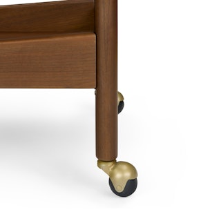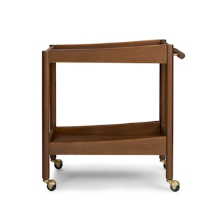 If you’ve ever dreamed of looking worldly, smart, or even a little stern, let us introduce you to the Cotu Bar Cart. Made of solid and veneered American black walnut, the Cotu bar cart features two generously sized serving platforms finished off with subtle brass hardware and a floating handle. This mid-century bar-on-wheels is ready to spice up your next soirée.