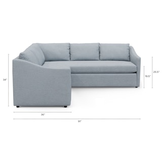 A minimal look with maximum impact… and maximum seating area. The Landry marries laid back comfort with elegant details to produce a sectional that is as comfortable hosting movie night as it is a cocktail hour. Sloping sleigh-style arms and clean straight lines make it simple to pair this sectional with many different styles. Try it with a warm white backdrop, against a wildly patterned rug, or draped with your favorite blanket. The Landry is easygoing style at its best.